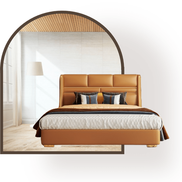 Kulit atau Bahan Serupa: Untuk tempat tidur dengan desain modern atau mewah, kulit atau bahan serupa sering digunakan untuk melapisi bagian-bagian tertentu dari tempat tidur, seperti headboard atau footboard.